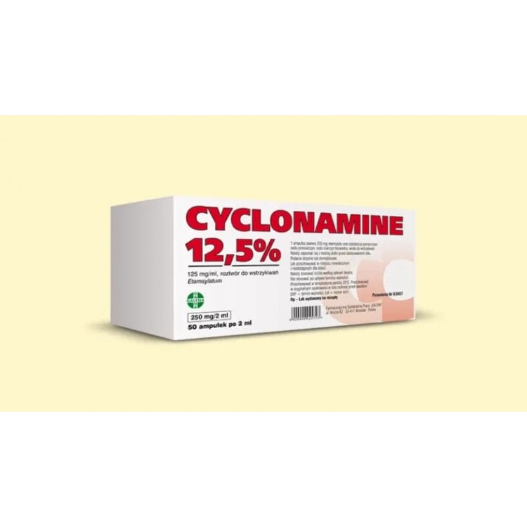 Степень связывания с белками плазмы крови составляет приблизительно 95 %. Период полувыведения из плазмы крови составляет приблизительно 3.7 часа. Около 72 % принятой дозы выводится в течение первых 24 часов с мочой: молекула выводится в неизмененном виде. Этамзилат проникает через плацентарный барьер. Материнская и пуповинная кровь содержат аналогичные концентрации этамзилата. Неизвестно, проникает ли этамзилат в грудное молоко.