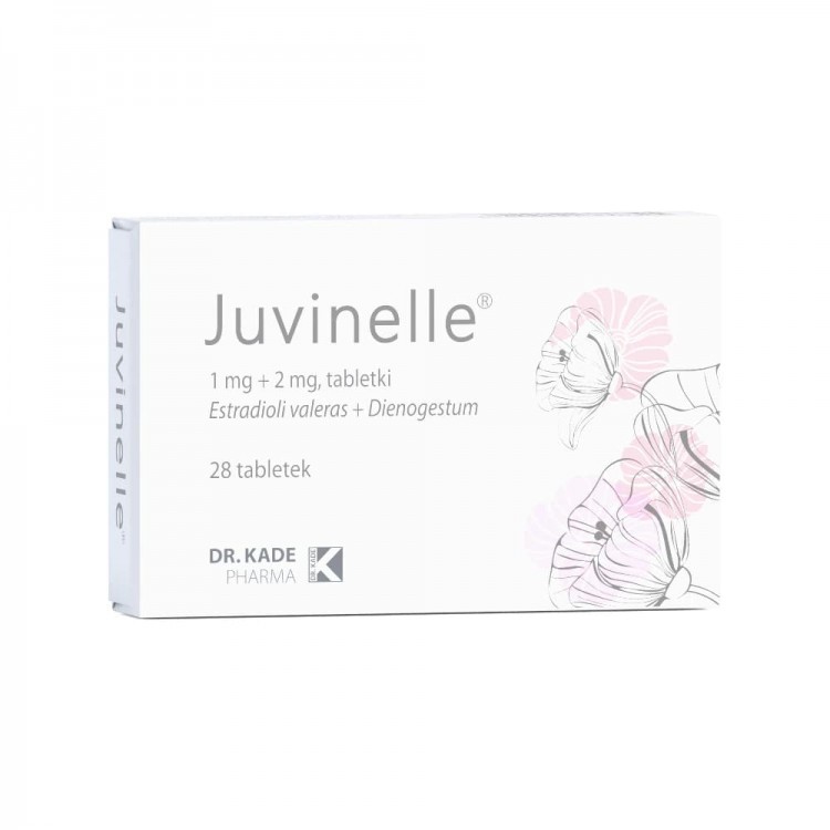 Juvinelle – это заместительная гормональная терапия (HZT). Таблетки содержат два действующих вещества. Один из них — эстроген, а другой — диеногест, то есть синтетический прогестаген. Препарат работает за счет увеличения концентрации эстрогена и прогестагена в организме после менопаузы.