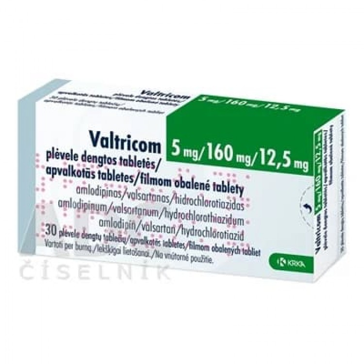 Валтриком (Valtricom) 5 мг/160 мг/12.5 мг, 30 таблеток